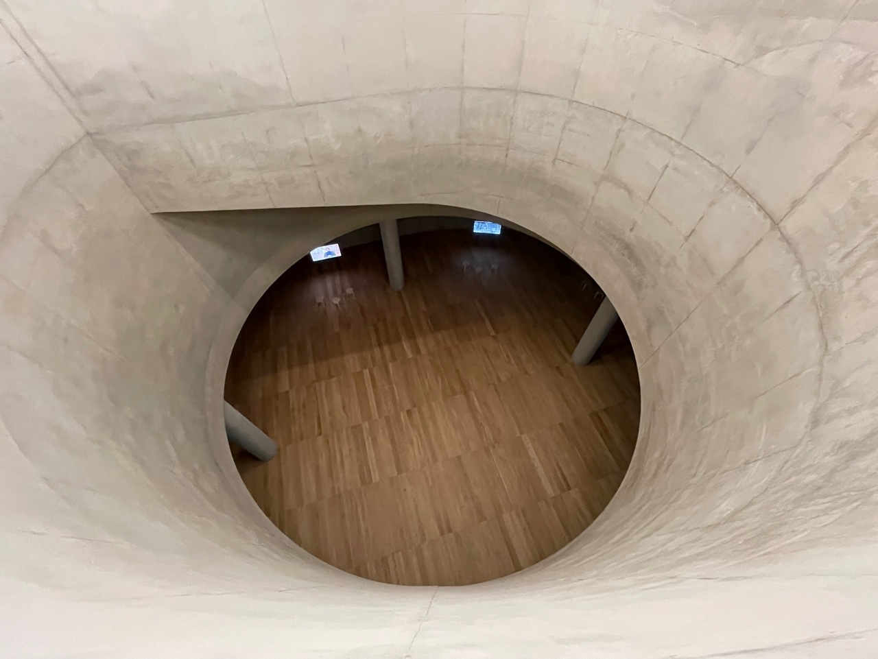 전시영역을 지배하는 건 중앙의 거대한 '아트리움'이다. 아트리움(atrium)은 건물 안쪽으로 여러 층에 걸쳐 형성되는 대규모 홀을 의미하는데 직역하면 ‘중정’ 또는 ‘중앙홀’이다. 그 기원은 고대 로마의 주거양식에서 찾아볼 수 있는 중앙의 안뜰에서 유래했다. 현대 건축에서는 주로 공간의 중심에서 시각적, 공간적 개방감을 제공하며 때로는 채광이나 환기와 같은 환경을 제어하는 데에도 효과적으로 사용된다. 이제는 많은 건물들에서 자주 접할 할 수 있는 종류의 공간이지만 이곳에서는 좀 특별하게 느껴진다. 모양 때문이다.